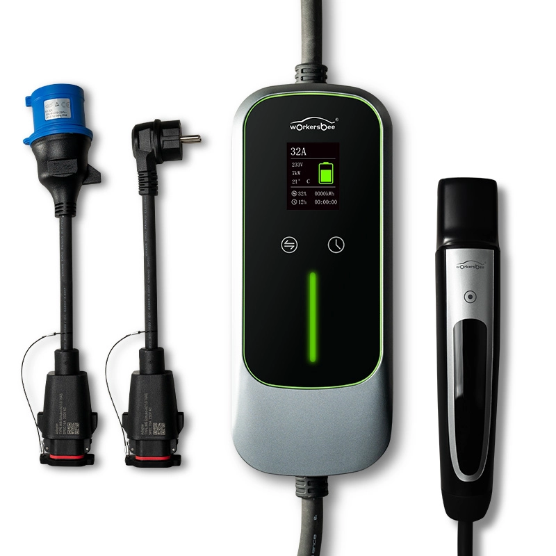 O carregador portátil para veículos elétricos GB/T da Workersbee (Modo 2 EVSE) oferece carregamento de 16A/32A até 3,6–7,4 kW com vedação IP67, visor OLED de status e opções de plugue personalizáveis (CEE, Schuko, NEMA). Certificado CE/TÜV/UKCA para viagens, uso doméstico e como reserva para frotas.